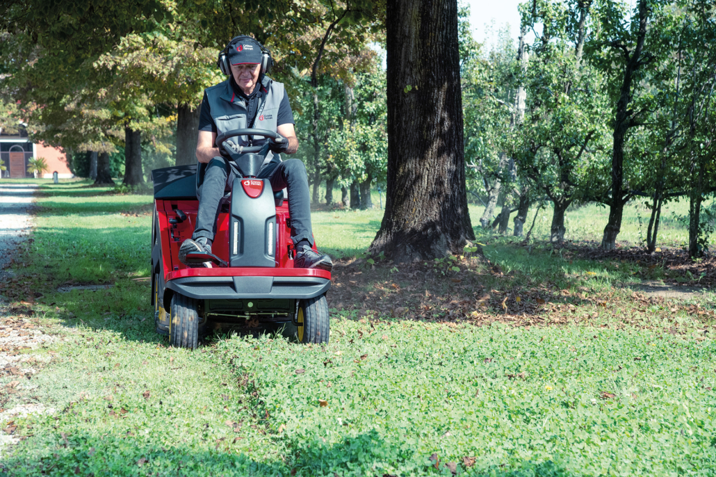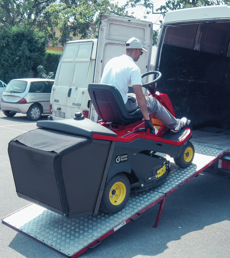 Большой травосборник объемом 280 литров выполнен из сетчатого полимера с антиультрафиолетовой добавкой. Сигнал заполнения травосборника оповещает оператора о переполнении травосборника и необходимости отключить деку, чтобы предотвратить засорение туннеля. Выгрузка травосборника осуществляется посредством ручного привода, усиленного пружиной газового типа. Он приводится в движение с помощью рычага, расположенного справа от места оператора. Дополнительно можно установить электрическую систему выгрузки травосборника, которая активируется нажатием на кнопку. Нижняя часть травосборника легко снимается для кошения в режиме заднего выброса.