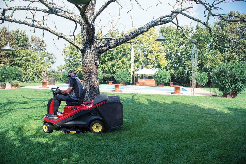 GTM обеспечивает чистый и аккуратный срез по всей ширине кошения благодаря продуманной конструкции. Расстояние между колесами соответствует ширине деки, что позволяет избежать непрокошенных полос. Плавающие ножи имеют особую форму, которая создает поток воздуха, направляющий скошенную траву в травосборник.