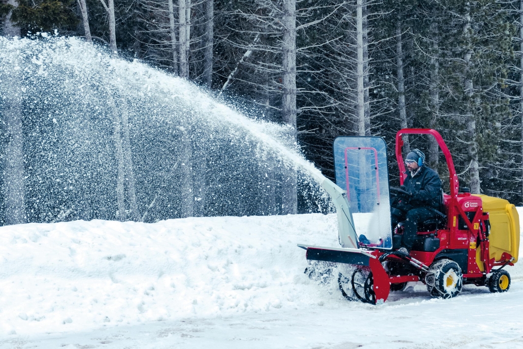 За счет расположения косильной деки и навесного оборудования в передней части машины модели GTS имеют небольшие размеры и улучшенную маневренность. Это позволяет многофункциональным машинам работать даже в труднодоступных местах без снижения эффективности.