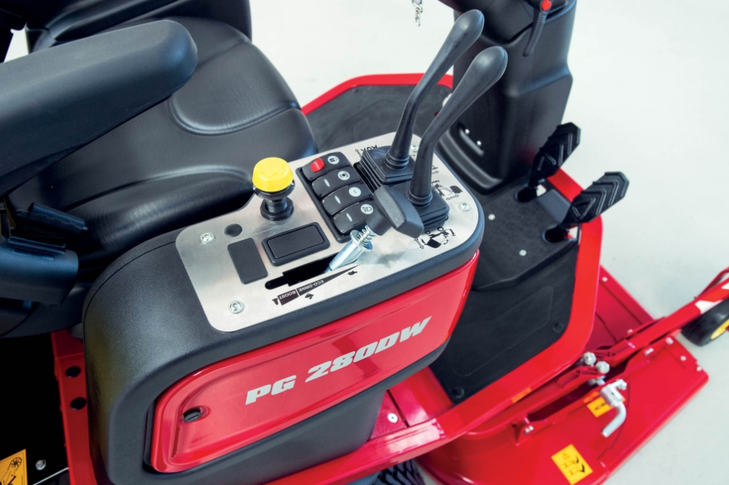 Каждая модель PG XPRO оснащается гидравлическим параллелограммным подъемником и опрокидывателем травосборника. Скошенную траву можно выгружать на высоте до 205 см в кузов грузовика или прицепа с высокими бортами.