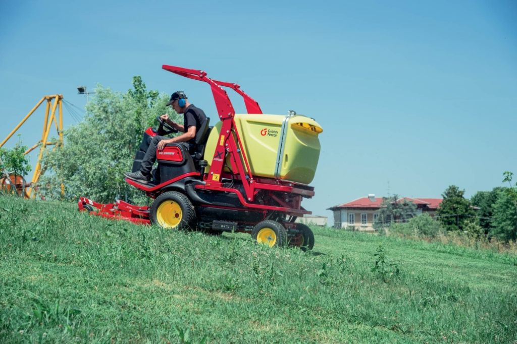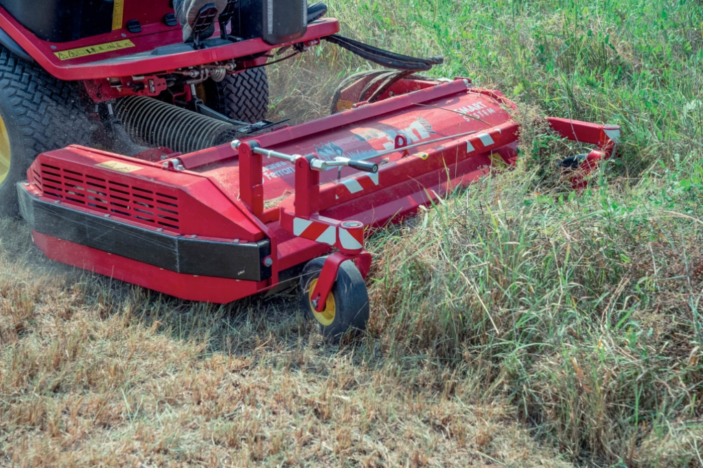 - Исключительная универсальность машины: турбина и коллектор всегда готовы к использованию не только с косильными деками, но и другими типами навесного оборудования.