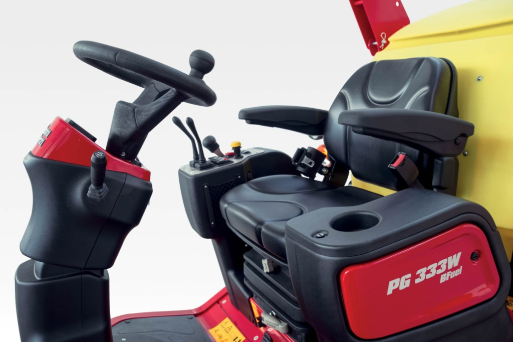Новая в линейке машин модель PG 333W BFuel оснащается двигателем Kubota бензин/LPG (сжиженный газ). Такая комбинация позволит существенно оптимизировать затраты в условиях постоянно растущих цен на дизельное топливо. Новая версия обладает двумя баками: емкостью 35 л. (для сжиженного газа) и 12 л. (для бензина). Обычно этого хватает на весь рабочий день, что обеспечивает значительную экономию при перемещениях и разгрузке полного бункера (благодаря использованию только сжиженного газа), и в то же время гарантируя высокую производительность (благодаря бензиновому двигателю). Еще одним плюсом является возможность доступа к рабочим зонам с повышенными требованиями к экологичности, - туда, где не разрешается использовать дизельные двигатели.