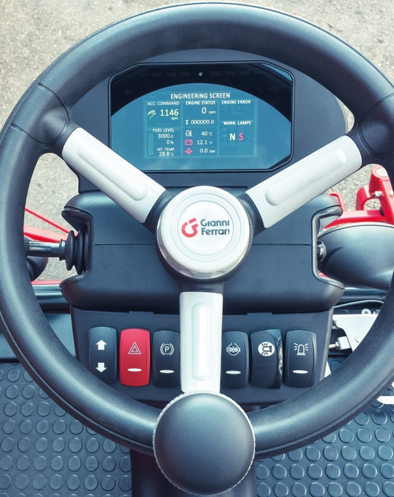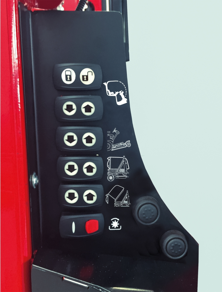 - Боковая панель с кнопками электроуправления оборудованием: работает при выключенном двигателе.
