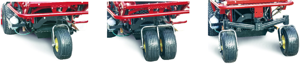 - СДВОЕННОЕ КОЛЕСО: меньше давление на газон (размеры 15×5.00-6)