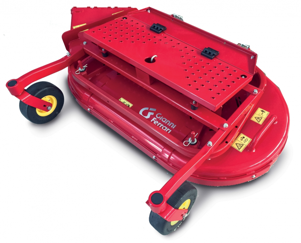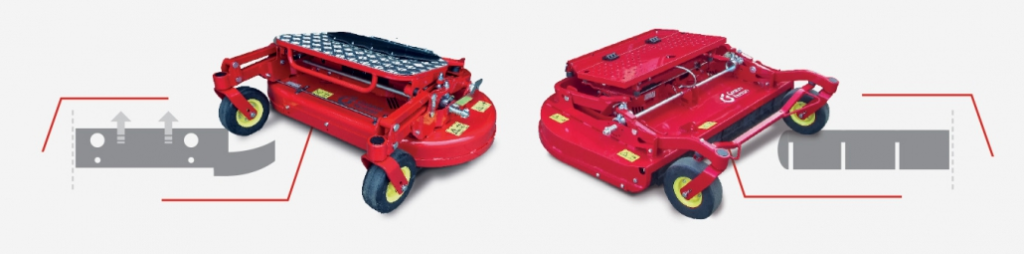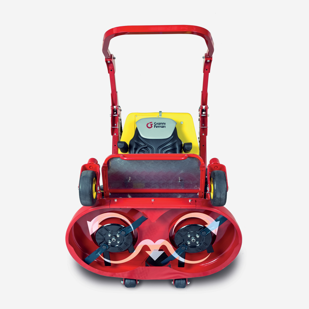 Резка выполняется при помощи двух дисков с откидными ножами. Диски вращаются в противоположных направлениях. В конструкции деки используется два запатентованных решения Gianni Ferrari: